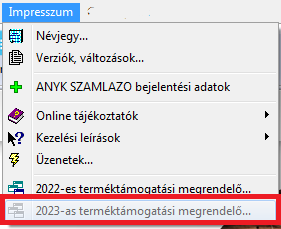 Évek óta folytatott gyakorlatunk, hogy a következő évi szoftververziókat a honlapunkon közzétett különféle, az egyes programváltozatokhoz igazodó megrendelőlapokon lehetett megrendelni. Az utóbbi években egyre nőtt a különböző változatokból előállított önálló szoftvereink száma, emiatt sok lett a megrendelőlapból, ezért egyszerűsítettünk! A programjaink főképernyőjén alul, egy futó felirat hívja fel a figyelmet arra, hogy megjelentek a következő évi megrendelőlapok. Ha Ön ezt az információt látja, akkor programja már felkészült a 2023-as terméktámogatásra.