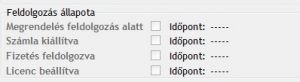 A véglegesítés és tárolás után az Ön megrendelése ügyfélszolgálatunkon azonnal megjelenik, és megkezdődik a megrendelés feldolgozása. Hozzánk azonnal beérkezik a megrendelés, és az Ön programjában látható visszaigazolást küldünk, ahol figyelemmel kísérheti megrendelése feldolgozásának állapotát, illetve azonnal rendezzük az Ön licencét ami ezentúl a felhőből fog frissülni az Ön gépén.